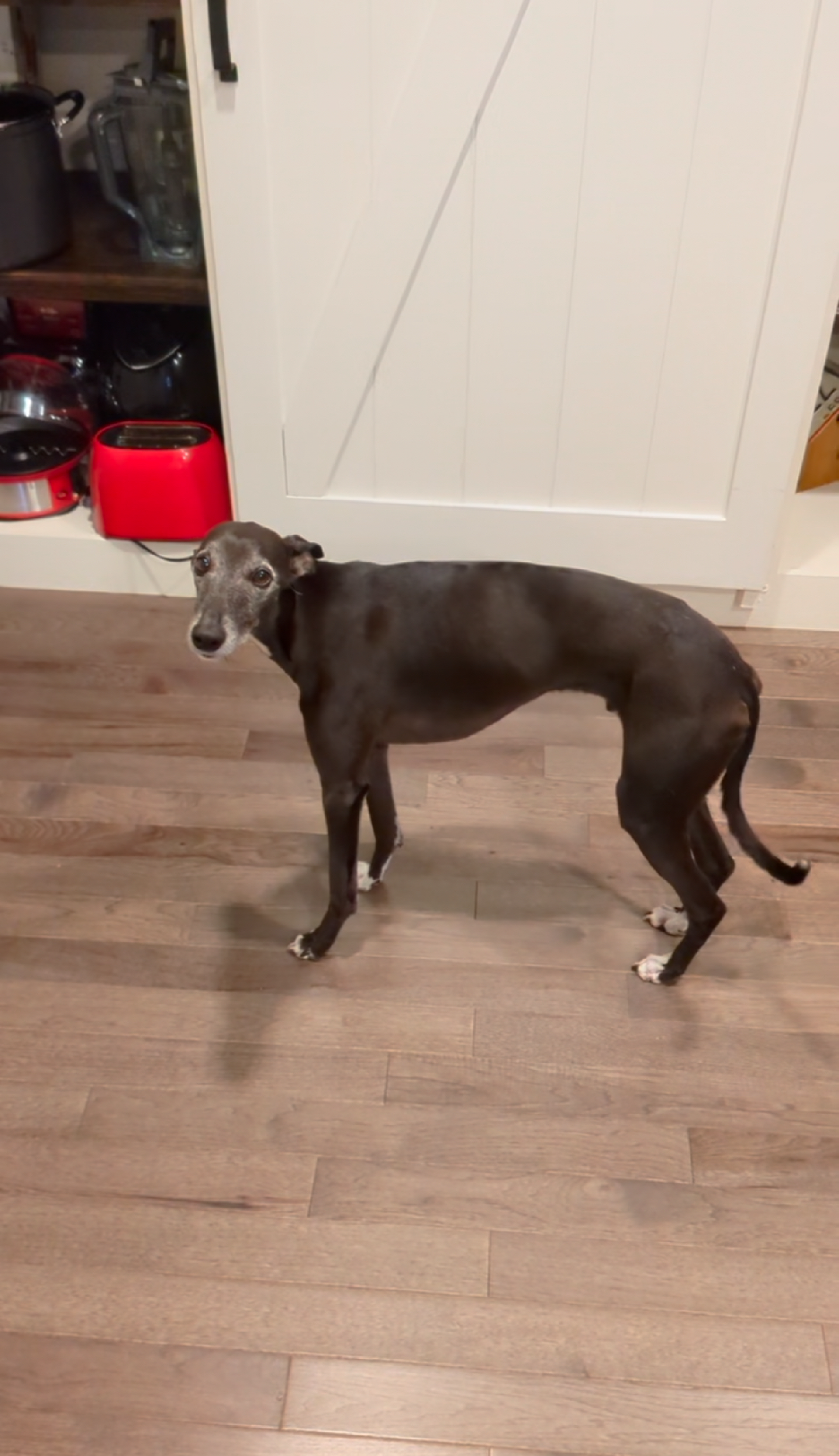 Whippet with narrow hind leg stance