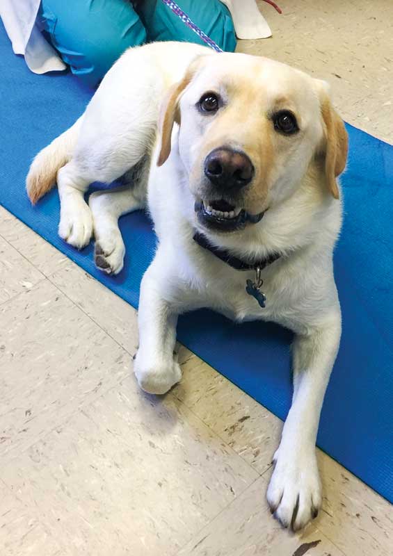 Labrador with front right paw tucked under