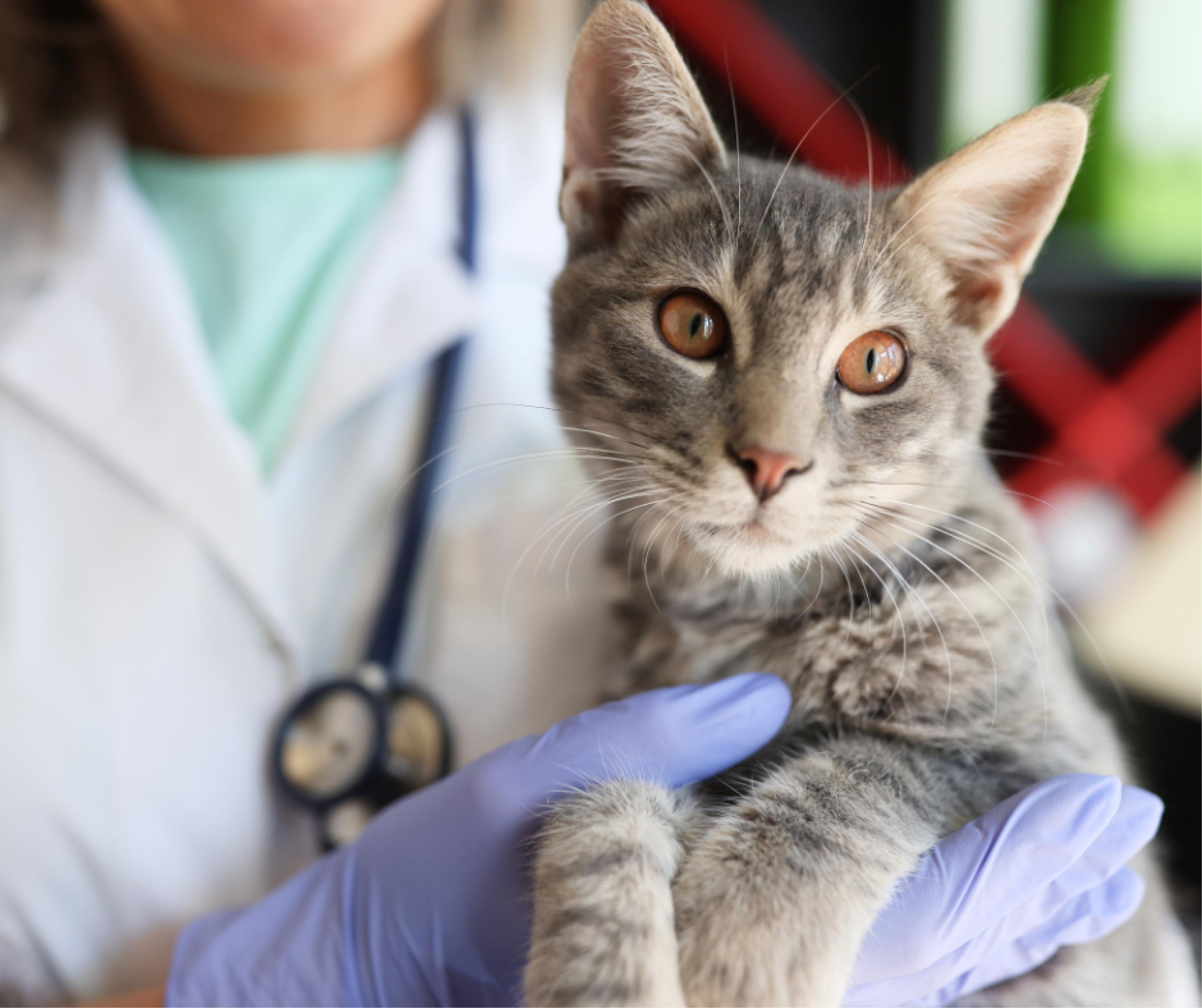 Cat being held by a veterinarian